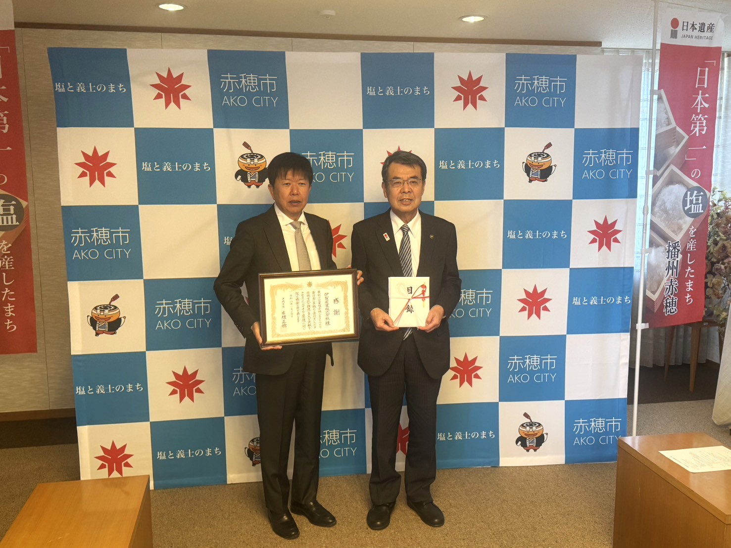 本日(1月14日)赤穂市役所にて企業版ふるさと納税感謝状授与式及び紺綬褒章伝達式が行われました。