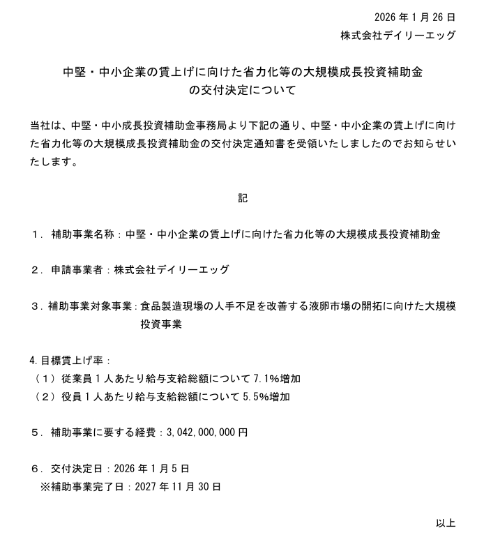 中堅・中小企業の賃上げに向けた省力化等の大規模成長投資補助金の交付決定に関するお知らせ
